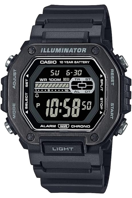 ساعت مچی کاسیو MWD-110HB-1BV سری ساعت STANDARD یه مدل دیجیتاله که برای استفاده روزمره فوقالعاده مناسبه. با مقاومت تا 100 متر در برابر آب و باتری با عمر 10 سال، میتونی روی دوام و کاراییش حساب کنی. طراحی قاب فلزی با خطوط زاویهدار و صفحه بزرگ و خوانا، همراه با قاب استیل ضد زنگ، یه ظاهر مدرن و شیک بهش داده. دکمه جلویی در موقعیت ساعت 6، دسترسی به نور LED کهربایی با پستاب رو خیلی راحت میکنه. این ساعت امکاناتی مثل کرونومتر 1/100 ثانیهای، تایمر شمارش معکوس، آلارم و نمایش دو زمانه رو داره که همه نیازهای روزمرهت رو پوشش میده.یه مدل دیجیتاله که برای استفاده روزمره فوقالعاده مناسبه. با مقاومت تا 100 متر در برابر آب و باتری با عمر 10 سال، میتونی روی دوام و کاراییش حساب کنی.